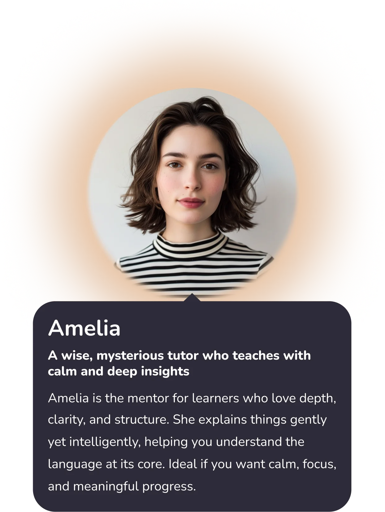 Amelia is the mentor for learners who love depth, clarity, and structure. She explains things gently yet intelligently, helping you understand the language at its core. Ideal if you want calm, focus, and meaningful progress.